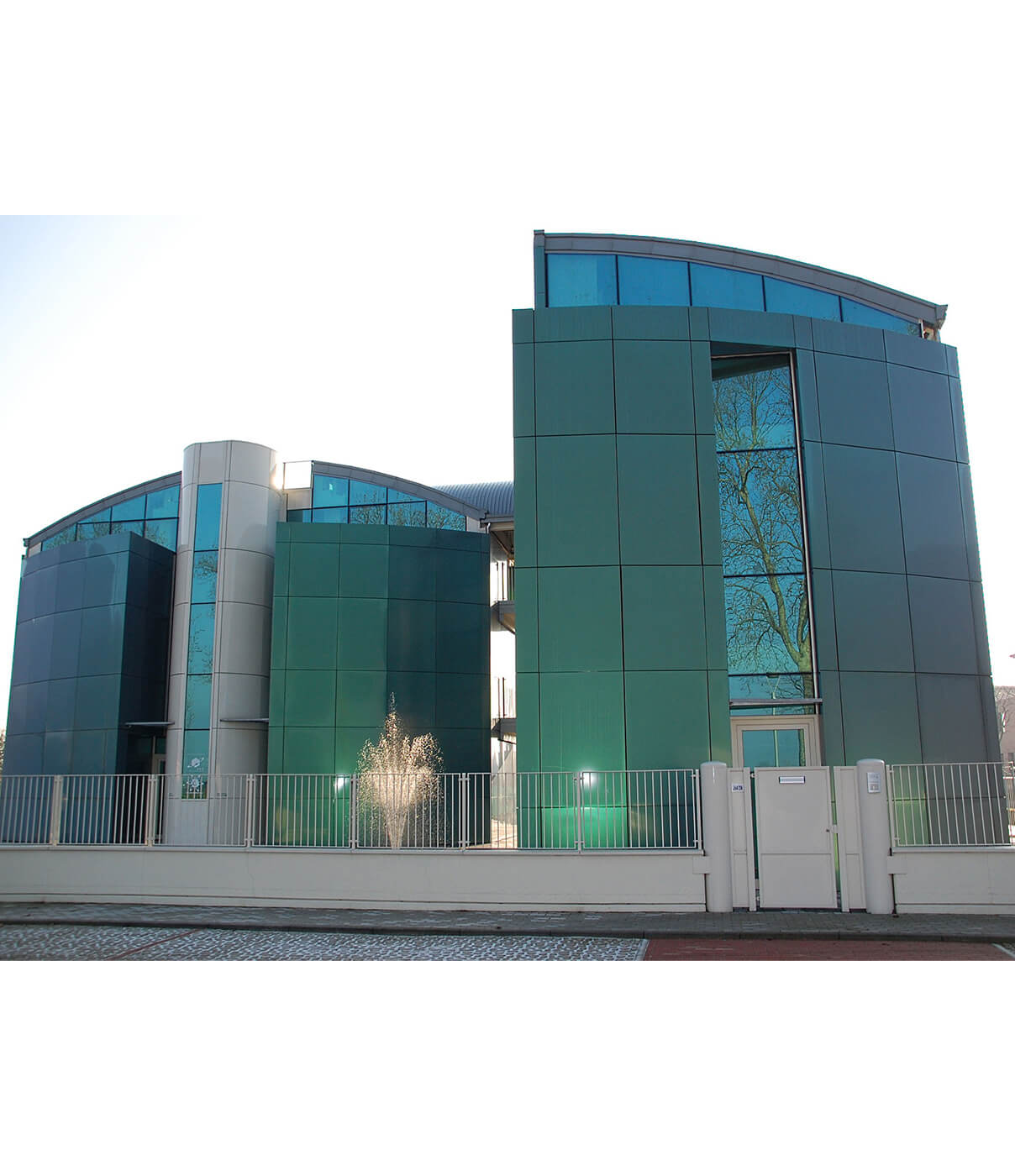 The building is enlivened by an external curtain wall that makes its skin iridescent and reflective. The opaque part is made up of panels which, in addition to ensuring good thermal and acoustic isolation, vary their colour from grey to green, passing through many intermediate ranges as the natural light changes, while the energy-saving glass and aluminium curtain walls reflect the surrounding environment.