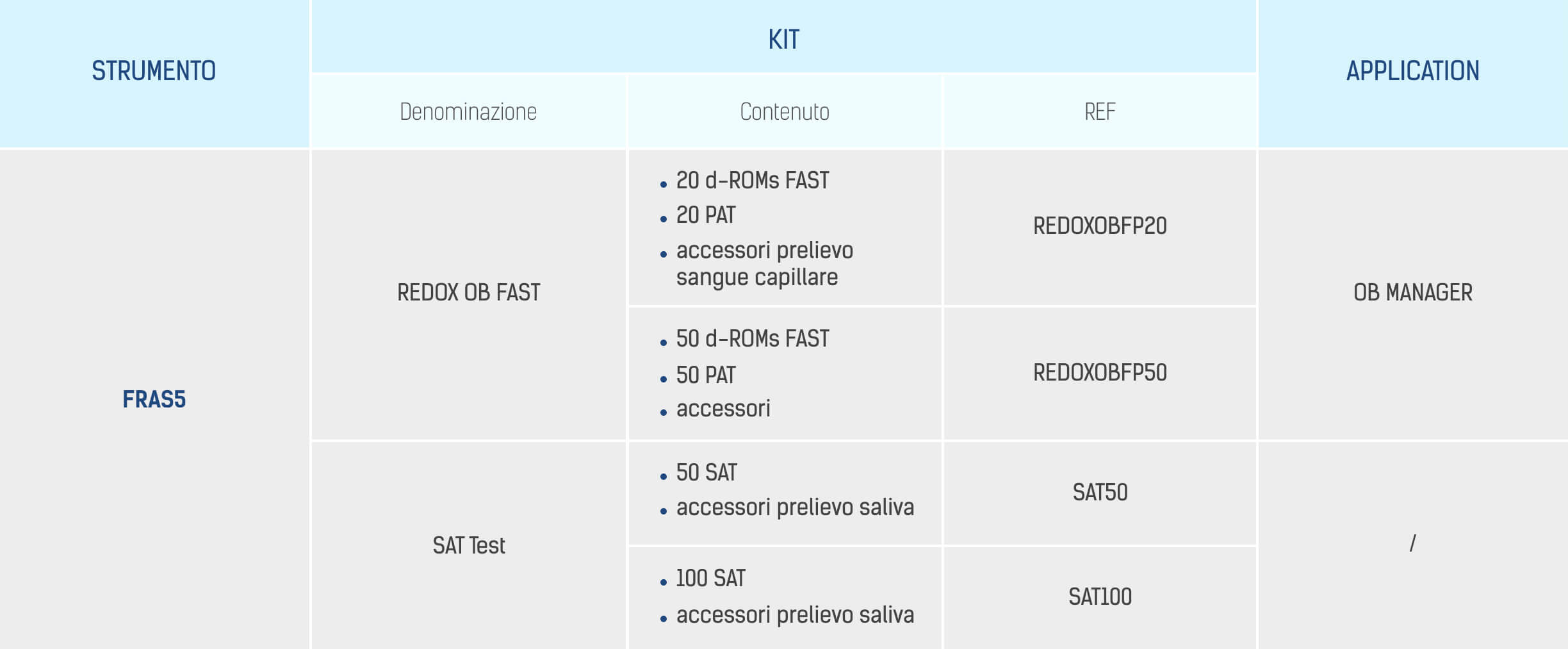 In meno di 10 minuti è possibile determinare l’equilibrio redox nel sangue mediante i test d-ROMs (potere proossidante) e PAT (potere antiossidante). E’ sufficiente un solo prelievo di sangue capillare, mediante digitopuntura, per poter eseguire entrambi i test. FRAS 5 è in grado inoltre di calcolare in tempo reale l’indice di stress ossidativo (OSI).